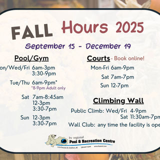 - Pool & Gym Closures: Closed on Mondays, Wednesday, Friday, and Sunday from 3-3:30 pm. Saturdays from 8:45am-12 pm and 3-30 pm.